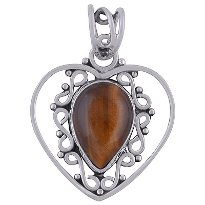 Home | Silver Pendants | Cabochon Pendants | Alluring Heart with Rawa Work Around Tiger's Eye Pear Shape 925 Sterling Solid Silver Pendant