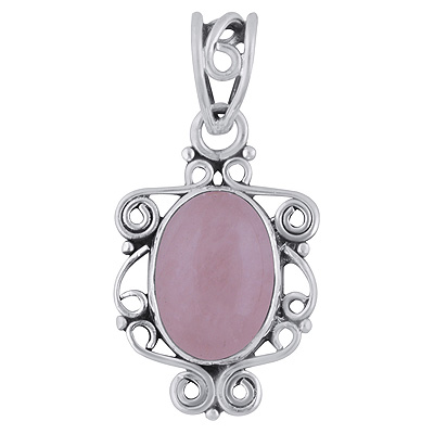 Home | Silver Pendants | Cabochon Pendants | Gorgeous Handcrafted Wire Work Around Rose Quartz Oval Shape 925 Sterling Solid Silver Pendant