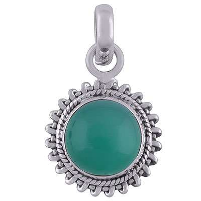 Home | Silver Pendants | Cabochon Pendants | Gorgeous Handcrafted Wire Work Around Green Onyx Round Shape 925 Sterling Solid Silver Pendant
