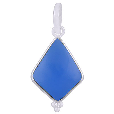 Home | Silver Pendants | Cabochon Pendants | Alluring Gemstone Rawa Work Around Blue Chalcedony Kite Shape 925 Sterling Solid Silver Pendant