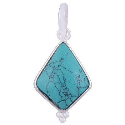 Home | Silver Pendants | Cabochon Pendants | Alluring Gemstone Rawa Work Around Turquoise Kite Shape 925 Sterling Solid Silver Pendant