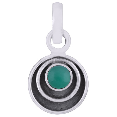 Home | Silver Pendants | Cabochon Pendants | Beautiful Concentric Circle Around Green Onyx Round Shape 925 Sterling Solid Silver Pendants