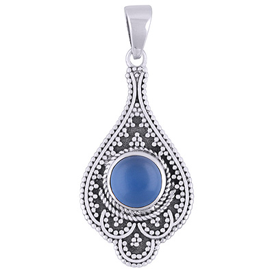 Home | Silver Pendants | Cabochon Pendants | Alluring Rawa Work Around Blue Chalcedony Round Shape 925 Sterling Solid Silver Pendant