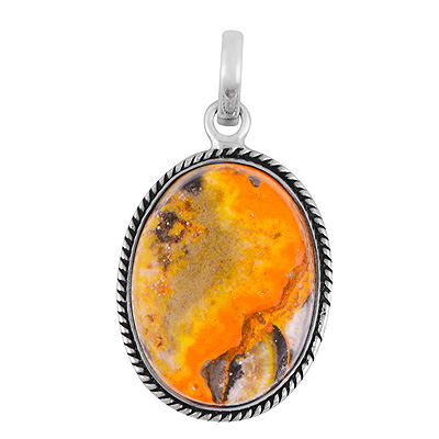 Beautiful Textured Wire Around BumbleBee Jasper Oval Shape 925 Sterling Solid Silver Pendant