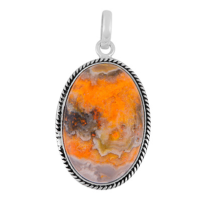 Beautiful Textured Wire Around BumbleBee Jasper Oval Shape 925 Sterling Solid Silver Pendant