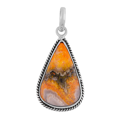 Beautiful Textured Wire Around BumbleBee Jasper Pear Shape 925 Sterling Solid Silver Pendant