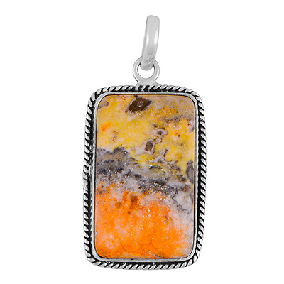 Beautiful Textured Wire Around BumbleBee Jasper Rectangle Shape 925 Sterling Solid Silver Pendant