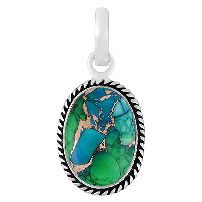 Authentic Wire Work Around Oyster Copper Turquoise Oval Shape 925 Sterling Solid Silver Pendants