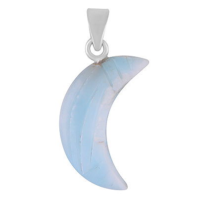 Beautiful Crescent Moon Carved out of Gemstone Larimar 925 Sterling Solid Silver Pendant