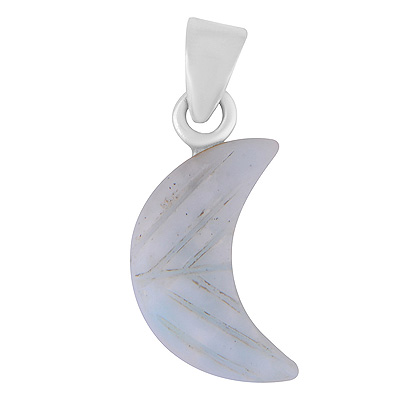 Beautiful Crescent moon Carved out of Gemstone Larimar 925 Sterling Solid Silver Pendant