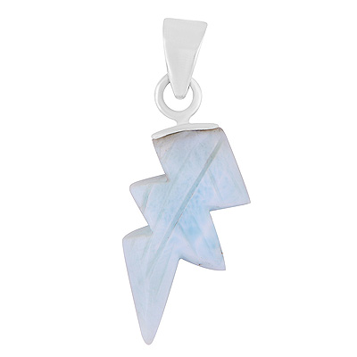 Gorgeous Lightning Bolt Carved out of Gemstone Larimar 925 Sterling Solid Silver Pendant