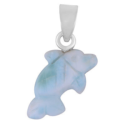 Alluring Fish Carved out of Gemstone Larimar 925 Sterling Solid Silver Pendant