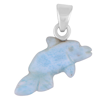 Alluring Fish Carved out of Gemstone Larimar 925 Sterling Solid Silver Pendant
