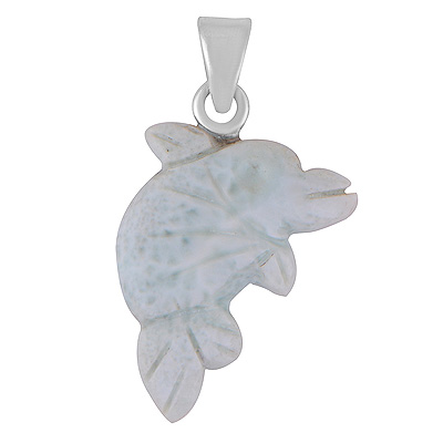Alluring Fish Carved out of Gemstone Larimar 925 Sterling Solid Silver Pendant