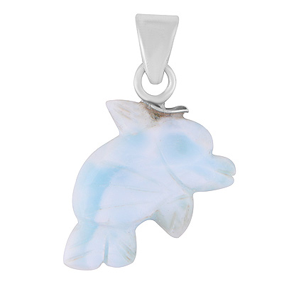 Alluring Fish Carved out of Gemstone Larimar 925 Sterling Solid Silver Pendant