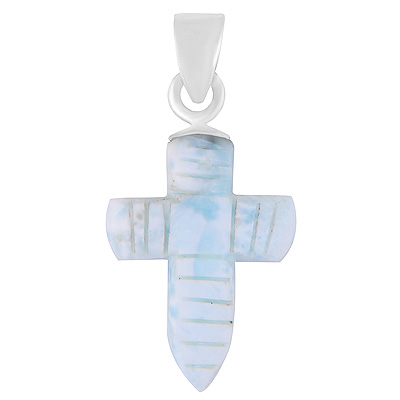 Stunning Cross Carved out of Gemstone Larimar 925 Sterling Solid Silver Pendant
