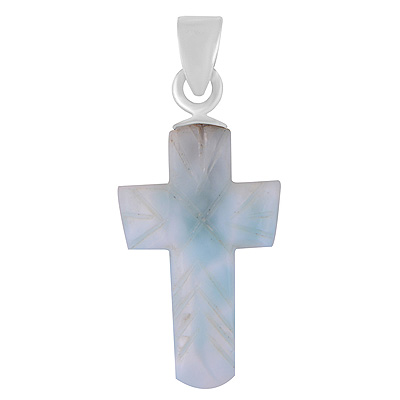 Stunning Cross Carved out of Gemstone Larimar 925 Sterling Solid Silver Pendant