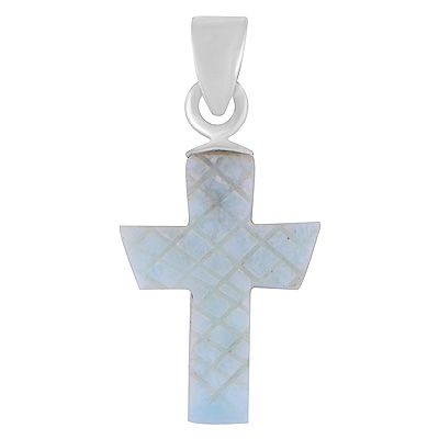 Stunning Cross Carved out of Gemstone Larimar 925 Sterling Solid Silver Pendant