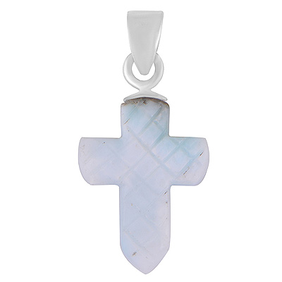 Stunning Cross Carved out of Gemstone Larimar 925 Sterling Solid Silver Pendant