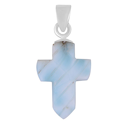 Stunning Cross Carved out of Gemstone Larimar 925 Sterling Solid Silver Pendant