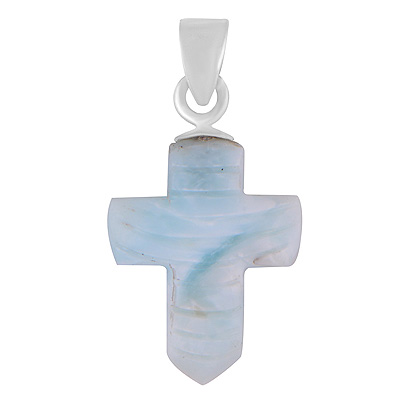 Stunning Cross Carved out of Gemstone Larimar 925 Sterling Solid Silver Pendant