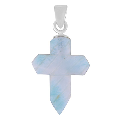 Stunning Cross Carved out of Gemstone Larimar 925 Sterling Solid Silver Pendant