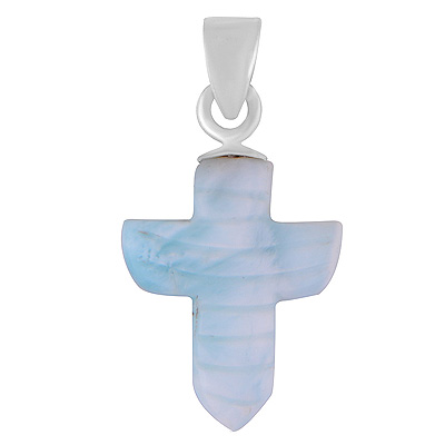 Stunning Cross Carved out of Gemstone Larimar 925 Sterling Solid Silver Pendant