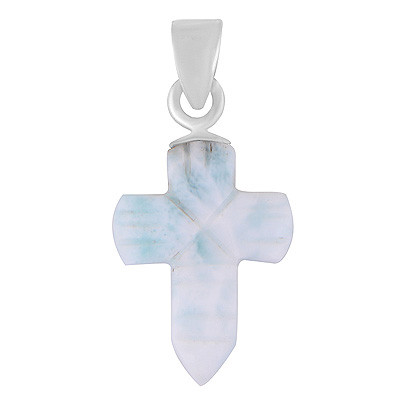 Stunning Cross Carved out of Gemstone Larimar 925 Sterling Solid Silver Pendant