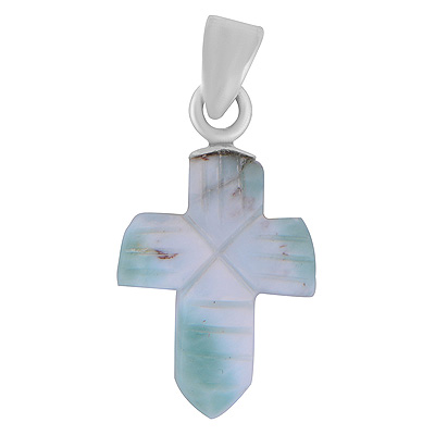 Stunning Cross Carved out of Gemstone Larimar 925 Sterling Solid Silver Pendant