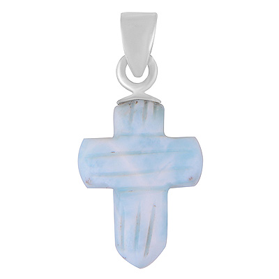 Stunning Cross Carved out of Gemstone Larimar 925 Sterling Solid Silver Pendant