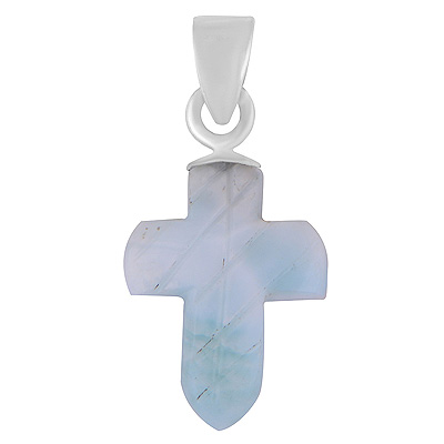 Stunning Cross Carved out of Gemstone Larimar 925 Sterling Solid Silver Pendant