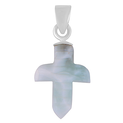 Stunning Cross Carved out of Gemstone Larimar 925 Sterling Solid Silver Pendant