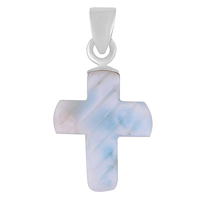 Stunning Cross Carved out of Gemstone Larimar 925 Sterling Solid Silver Pendant