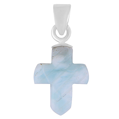 Stunning Cross Carved out of Gemstone Larimar 925 Sterling Solid Silver Pendant
