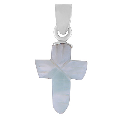 Stunning Cross Carved out of Gemstone Larimar 925 Sterling Solid Silver Pendant
