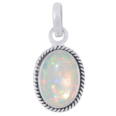 Authentic Wire Work Around Ethiopian Opal Oval Shape 925 Sterling Solid Silver Pendant