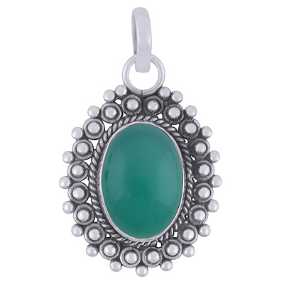 Home | Silver Pendants | Cabochon Pendants | Classic Rawa Work Around Green Onyx Oval Shape 925 Sterling Solid Silver Pendant