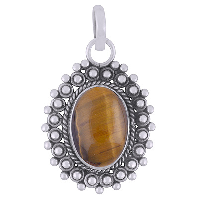 Home | Silver Pendants | Cabochon Pendants | Classic Rawa Work Around Tiger's Eye Oval Shape 925 Sterling Solid Silver Pendant