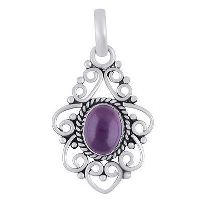 Stunning Wire Pattern & Rawa Work Around Amethyst Oval Shape 925 Sterling Solid Silver Pendant