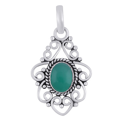 Stunning Wire Pattern & Rawa Work Around Green Onyx Oval Shape 925 Sterling Solid Silver Pendant
