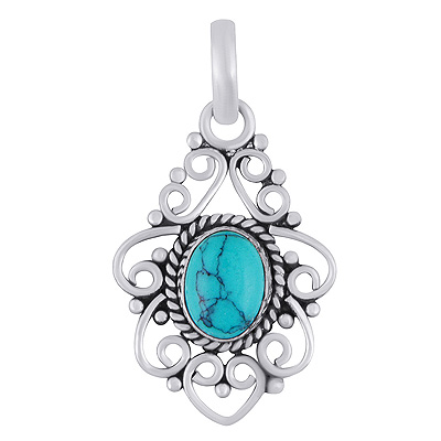 Stunning Wire Pattern & Rawa Work Around Turquoise Oval Shape 925 Sterling Solid Silver Pendant