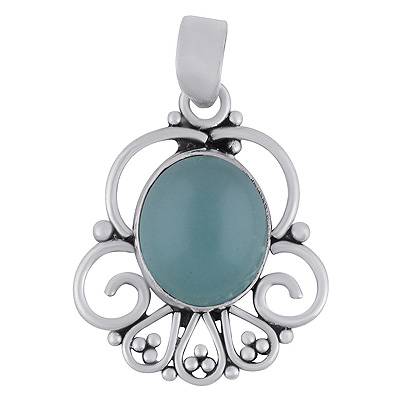 Home | Silver Pendants | Cabochon Pendants | Alluring Wire Pattern & Rawa Work Around Aqua Chalcedony Oval Shape 925 Sterling Solid Silver Pendants
