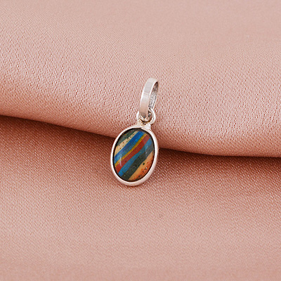 Home | Silver Pendants | Cabochon Pendants | Stunning Handmade Bezel Rainbow Calsilica Oval Shape 925 Sterling Solid Silver Pendants