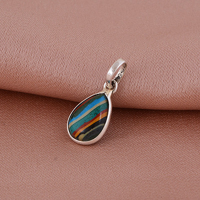 Home | Silver Pendants | Cabochon Pendants | Stunning Handmade Bezel Rainbow Calsilica Pear Shape 925 Sterling Solid Silver Pendants