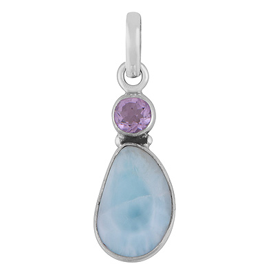 Gorgeous Seated Multiple Gemstones Amethyst,Larimar Round,Oval Shape 925 Sterling Solid Silver Pendant