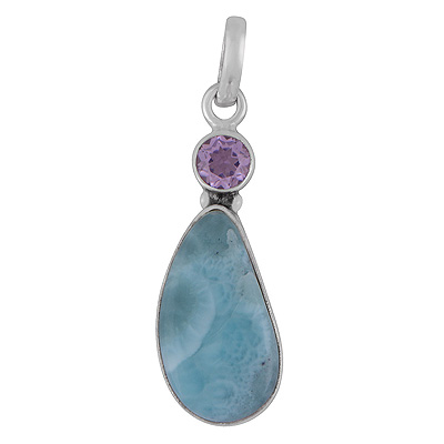 Gorgeous Seated Multiple Gemstones Amethyst,Larimar Round,Oval Shape 925 Sterling Solid Silver Pendant