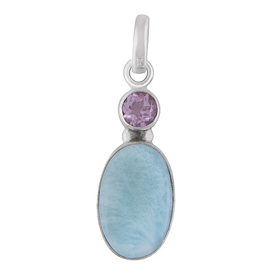 Gorgeous Seated Multiple Gemstones Amethyst,Larimar Round,Oval Shape 925 Sterling Solid Silver Pendant