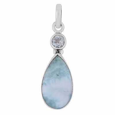 Gorgeous Seated Multiple Gemstones Blue Topaz,Larimar Round,Pear Shape 925 Sterling Solid Silver Pendant