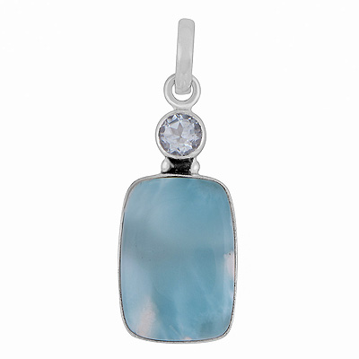 Home | Silver Pendants | Cabochon Pendants | Gorgeous Seated Multiple Gemstones Blue Topaz,Larimar Round,Rectangle Shape 925 Sterling Solid Silver Pendant