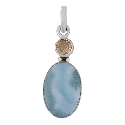 Gorgeous Seated Multiple Gemstones Citrine,Larimar Round,Oval Shape 925 Sterling Solid Silver Pendant